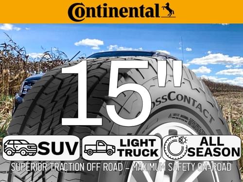 The Continental CrossContact ATR range in 15 inches primarily serves older generation 4x4s and utility vehicles, offering a robust construction suitable for mixed on/off-road use in the Irish market.